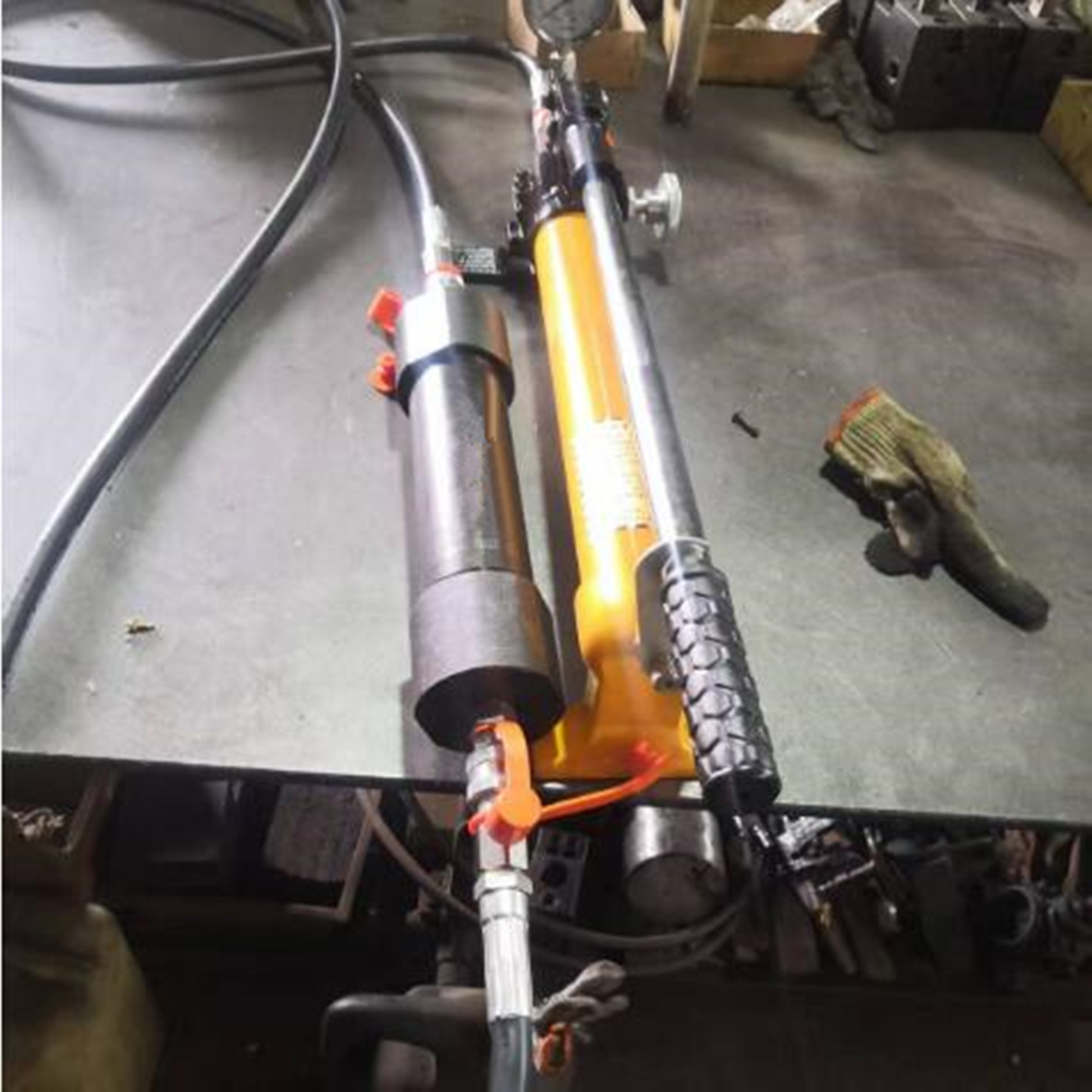 本产品是手动液压泵站,液压软管,液压缸组成,可完成注脂功能,配备其他执行元件,也可执行弯曲,拉伸,剪切,校直等功能