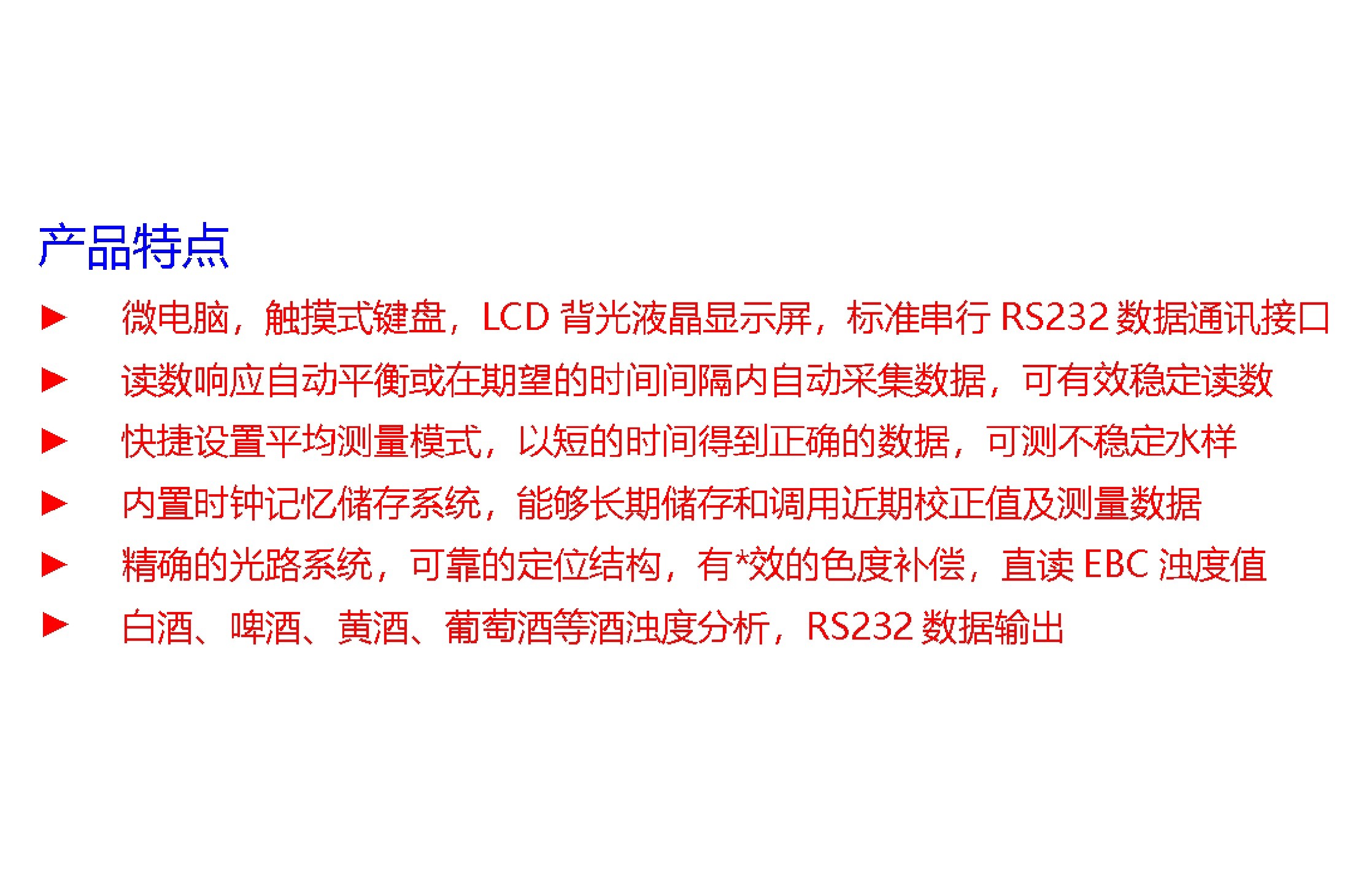 5.的光路系统,的定位结构,有*效的色度补偿,直读EBC浊度值