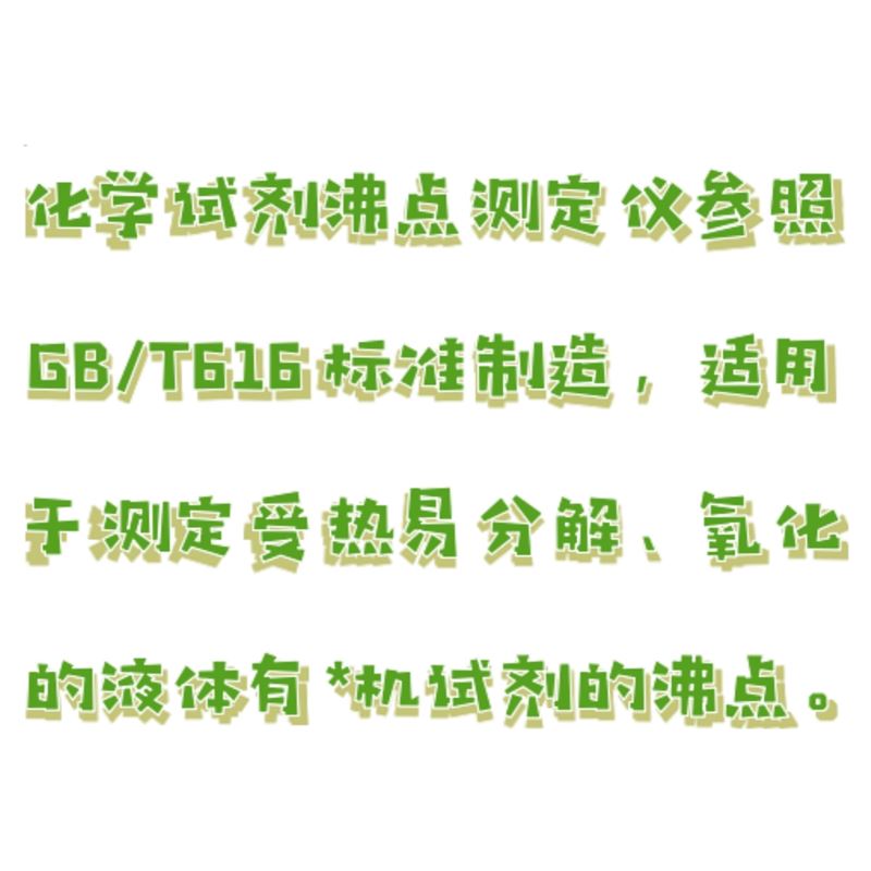 本仪器参照GB/T616标准制造,适用于测定受热易分解、氧化的液体有*机试剂的沸点。
